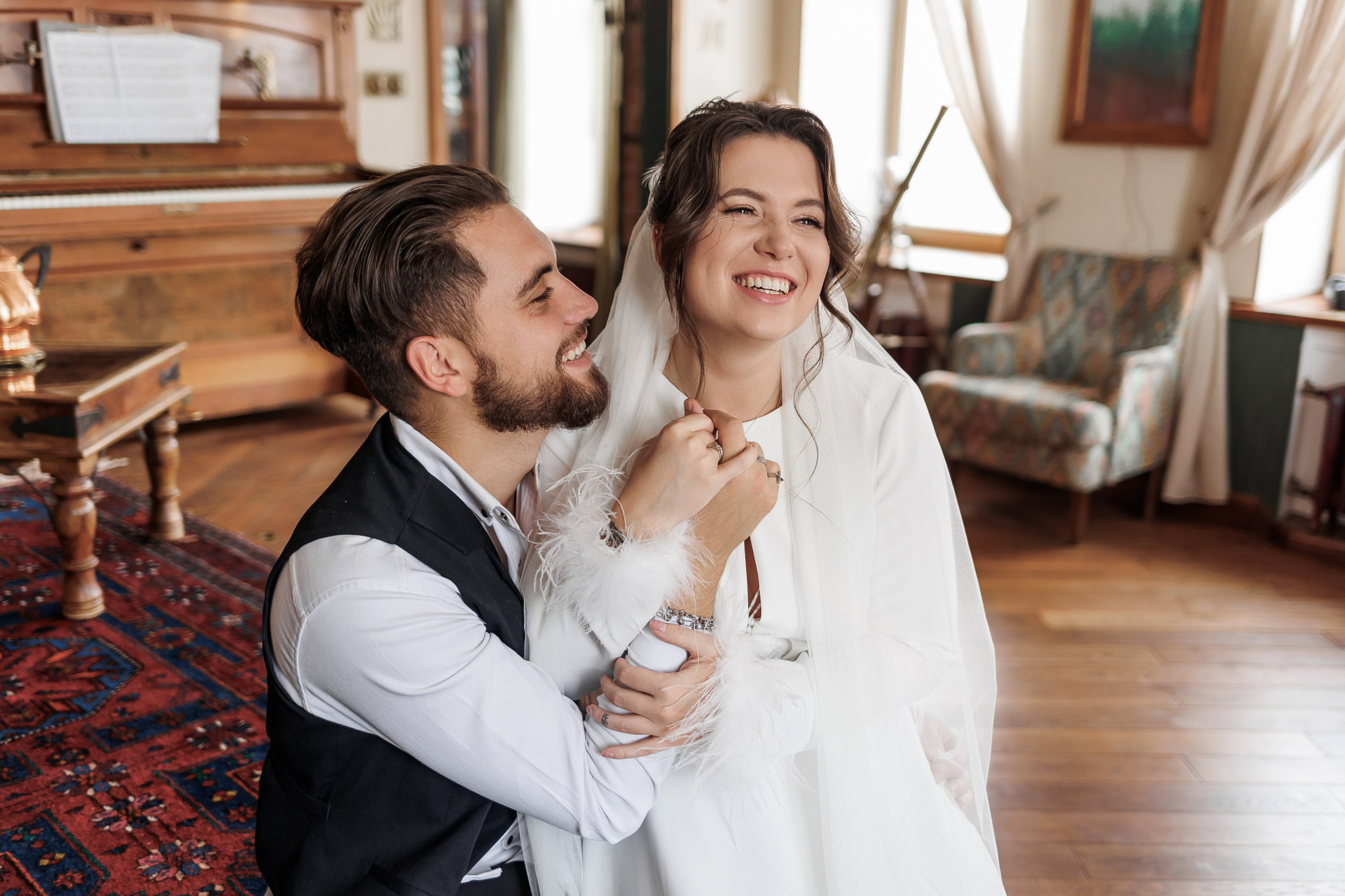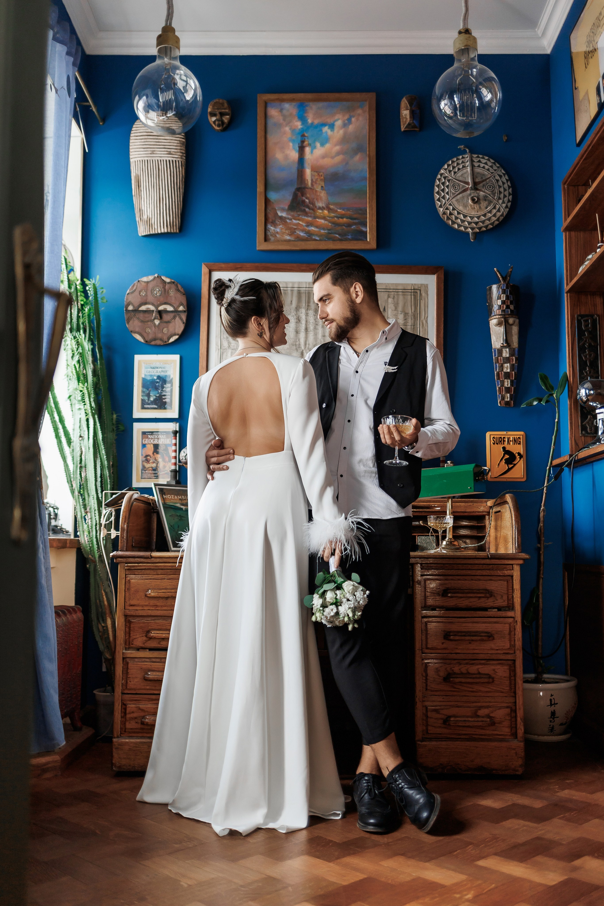 Студия с уютной атмосферой и художественным подходом к свету и пространству. Отличный вариант для романтических свадебных портретов, особенно если хочется мягких, эмоциональных кадров.