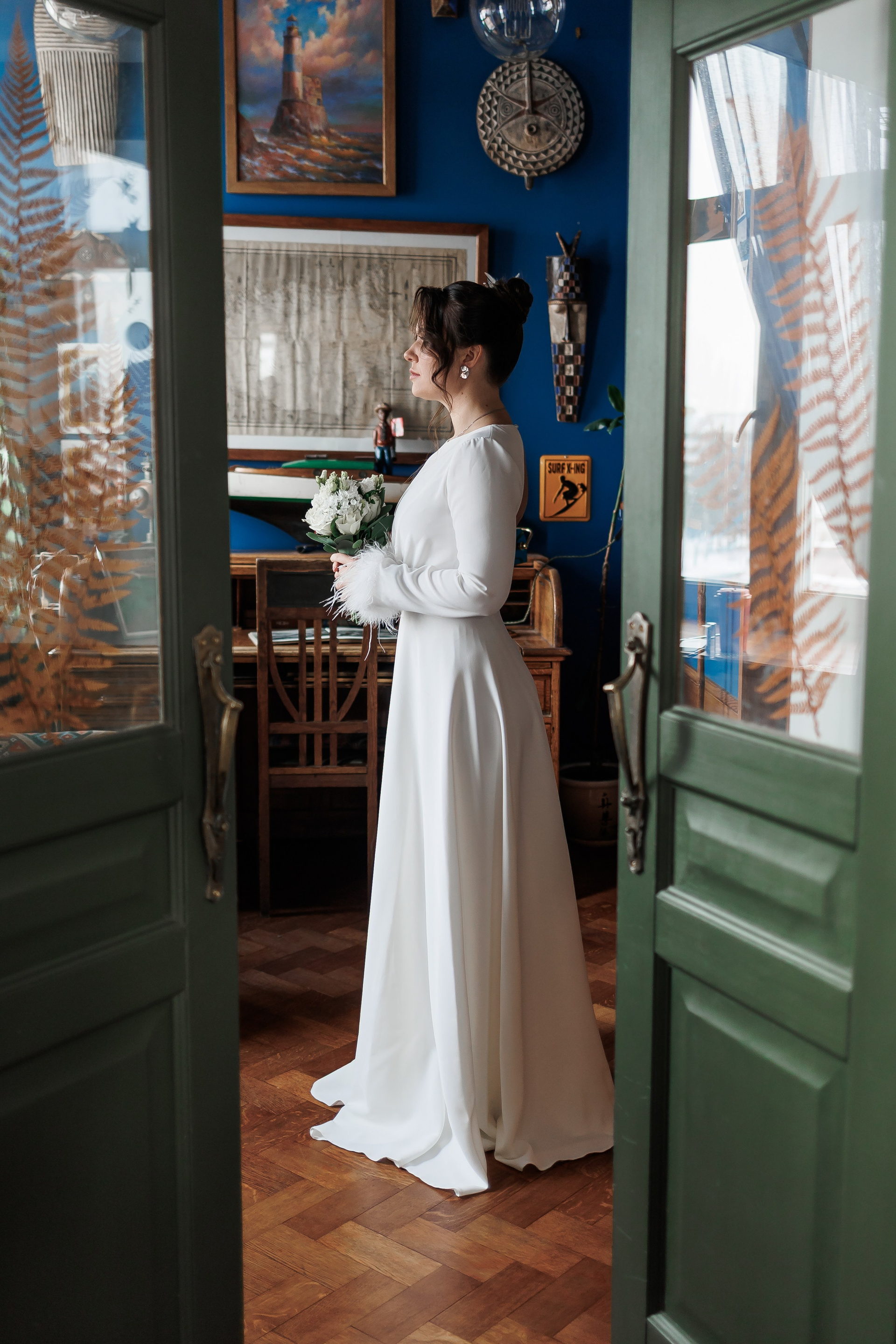 Фотостудия с большими окнами, естественным светом и несколькими залами. Хороший выбор для классических свадебных портретов с естественным светом, а также для творческих студийных образов.