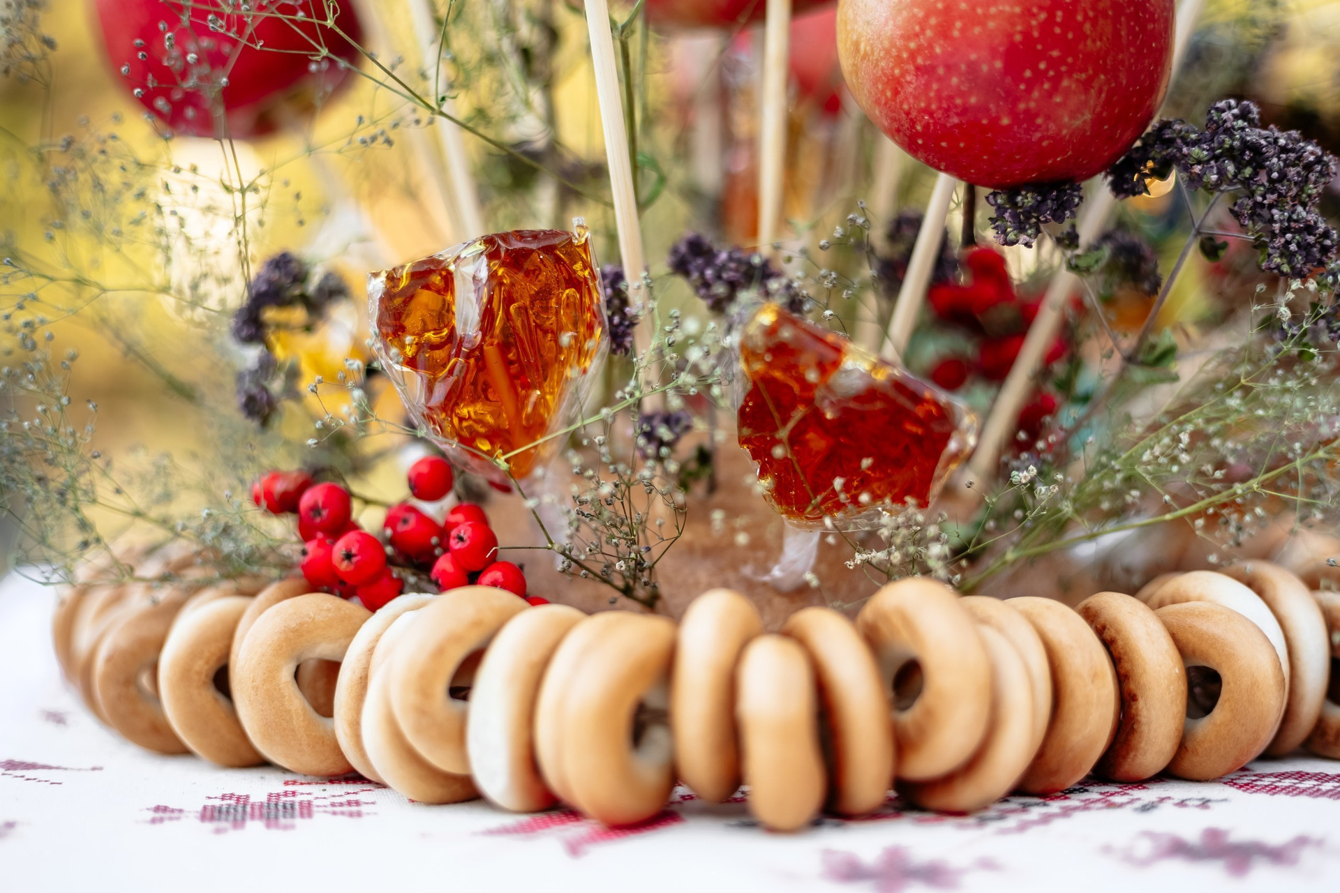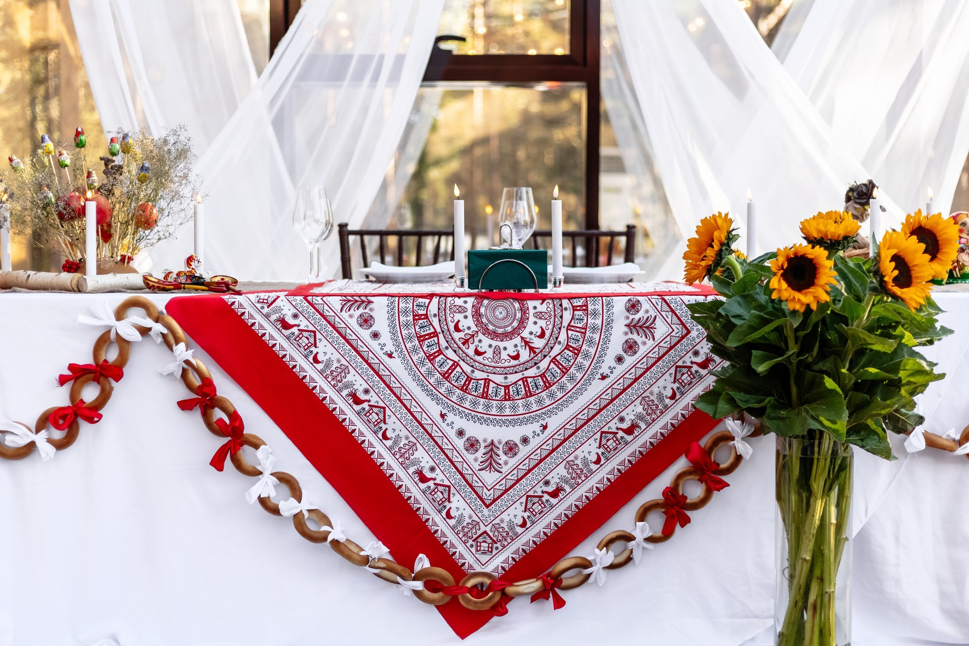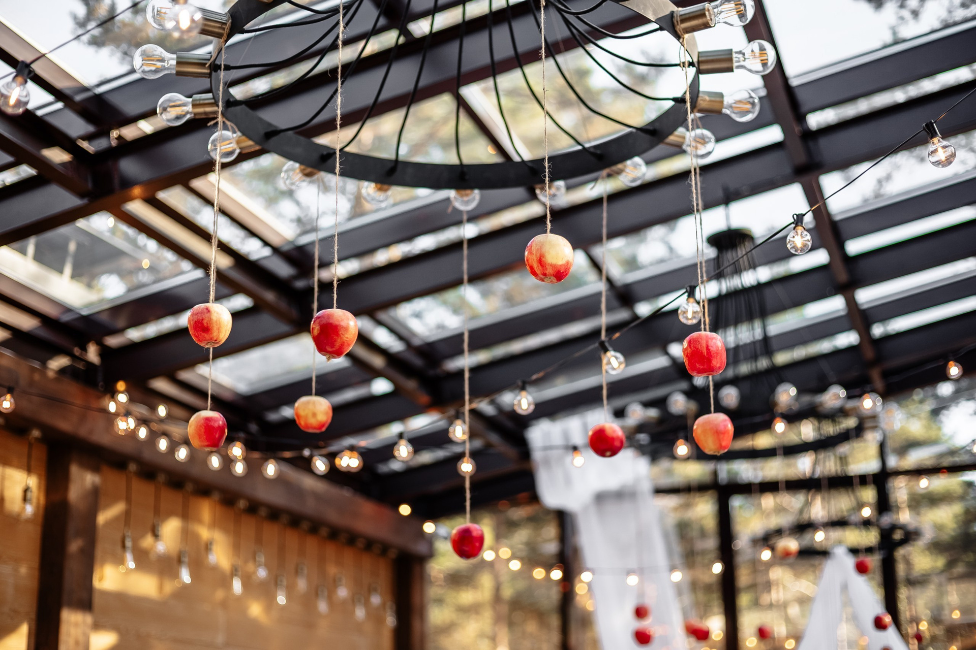 - Сервировка: Натуральные материалы — дерево, керамика, медные или оцинкованные стаканы. Вместо карточек рассадки используйте камушки с именами, листья или маленькие горшочки с суккулентами.