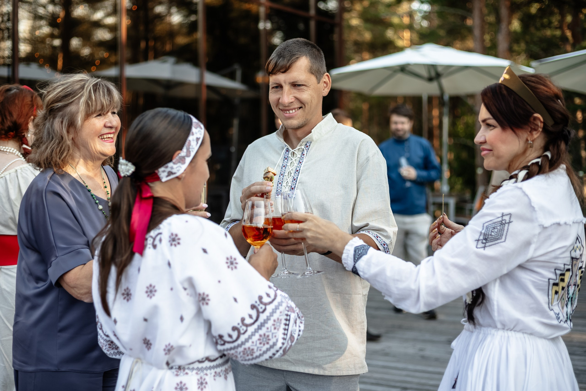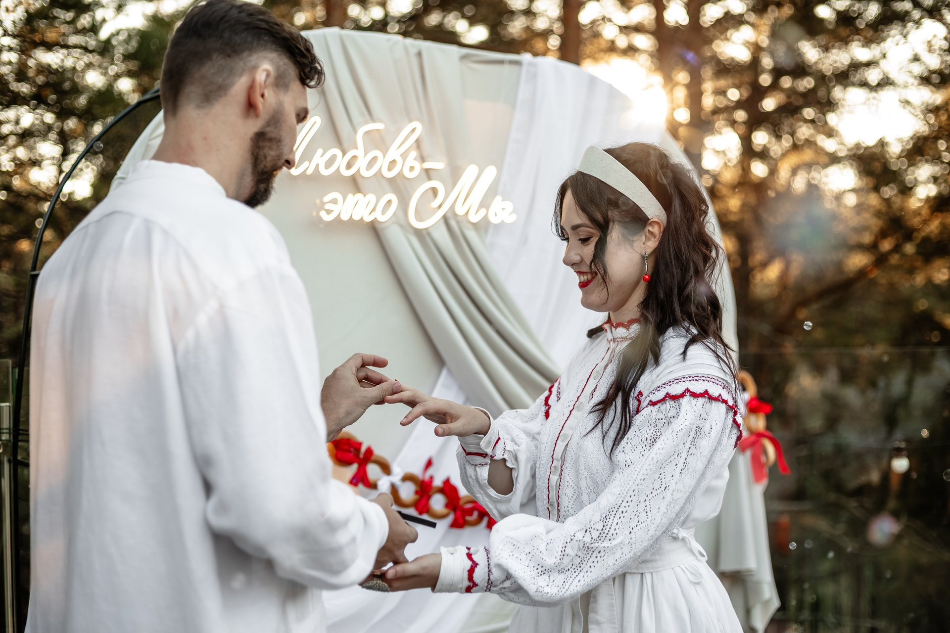 Свадьба в русском народном стиле — это сочетание душевности и символизма. Венки из полевых трав, расшитые сарафаны, платки, рушники, деревянные избы и берёзовые рощи создают неповторимую атмосферу.