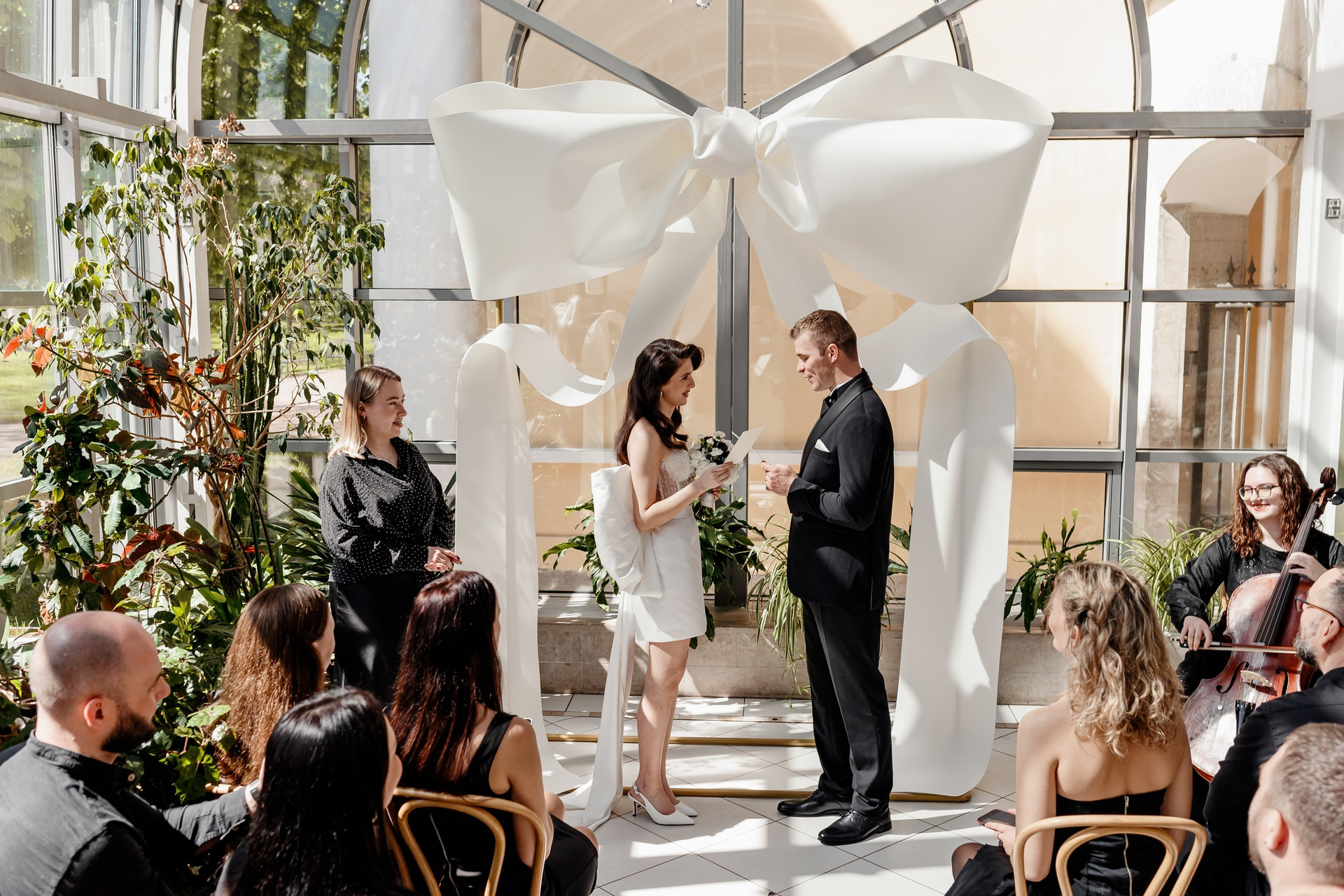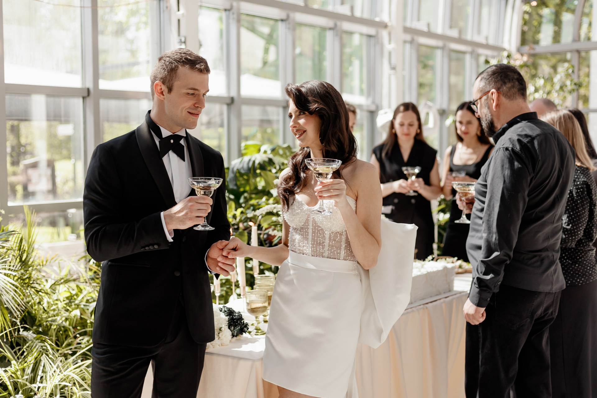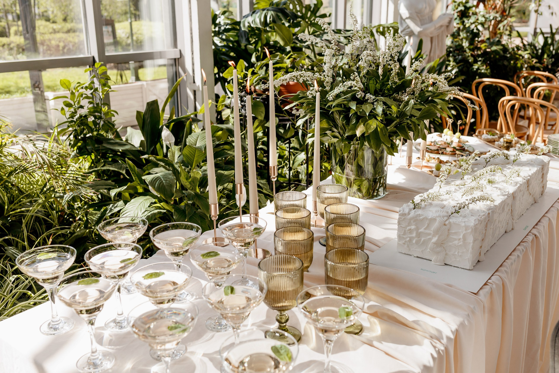 - Спасение от капризов погоды. В «Оранжерее» всегда тепло и сухо (+20…+25°C), даже если за окном промозглый ноябрьский дождь. Это идеальный вариант для осенних, зимних и ранневесенних свадеб.